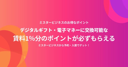 ポイントの獲得は「ミスタービジネス」サイトから問合せ且つステイコネクトを利用した申込・入居に限る。