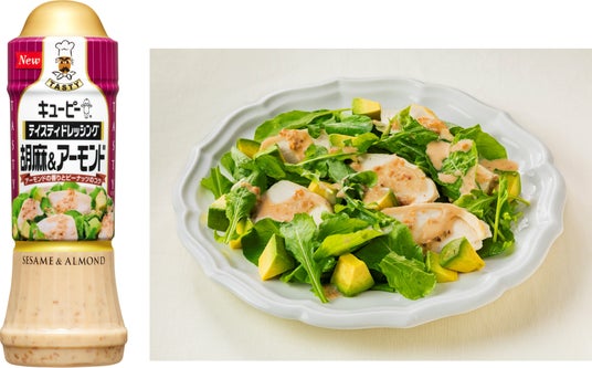 ドレッシングの豊富なラインアップの中で最も人気が高いのがクリーム状の「ごまドレッシング」で、売上構成比は市場全体の約3割に上ります※2。本シリーズでも、1996年に「テイスティドレッシング セサミ」を発売し、時代のニーズやトレンドに合わせて改良やリニューアルを行ってきました。新商品の「胡麻&アーモンド」は、お客さま調査でごまに合わせる食材として評価が高かった「アーモンド」を選びました。すりたての焙煎ごまと焙煎アーモンドのコク・具材感・香り立ちを追求し、“かけるだけでごちそうになる”ごまドレッシングに仕立てました。