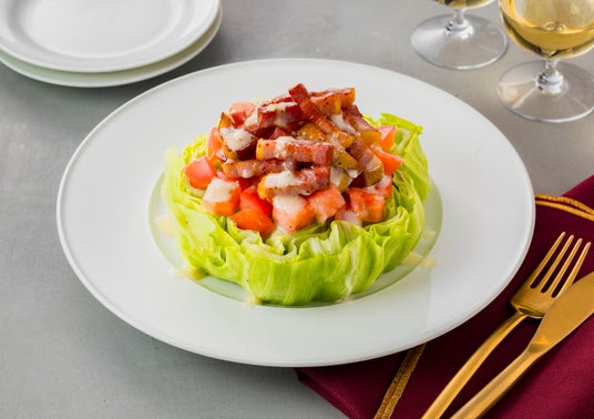 メニュー例:ベーコンとトマトのウェッジサラダ(シーザーサラダ オリーブオイル入り使用)