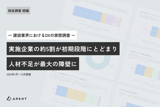 建設DXを推進する株式会社Arent(東京都港区、代表取締役社長:鴨林広軌、以下Arent)は、2024年7月~2024年12月に当社が登壇したセミナーや展示会において、建設業界におけるDXの実態に関するアンケートを実施しました。その結果、建設DXの推進において多くの企業が初期段階にあり、人材不足やデータ管理の課題が大きな障壁となっていることが明らかになりました。また、DXの実施目的として効率化を重視する一方で、革新を目指す動きが限定的であることも浮き彫りになっています。