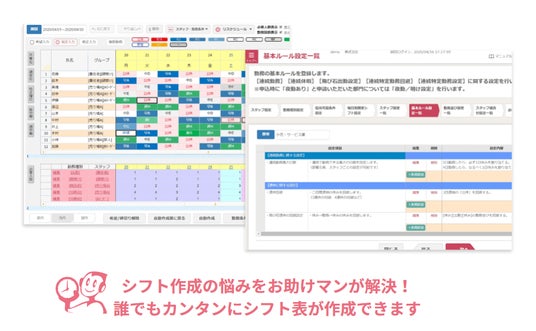 法令遵守や働きやすさを考慮したシフト表を、誰でも簡単に自動作成することができます。