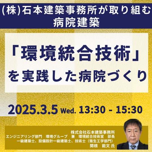 JPI(日本計画研究所)は、株式会社石本建築事務所 エンジニアリング部門 環境グループ 兼 環境統合技術室 部長 一級建築士、設備設計一級建築士、技術士(衛生工学部門) 関根 能文 氏を招聘し、「環境統合技術」を実践した病院づくりについて詳説いただくセミナーを開催します。