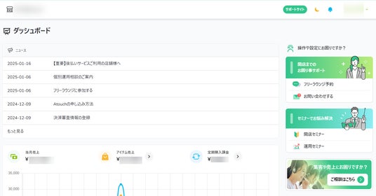 この度、管理画面にログイン後に表示されるダッシュボードが、より「Atouch」を活用しやすい画面構成へと変更され、機能が強化されました。