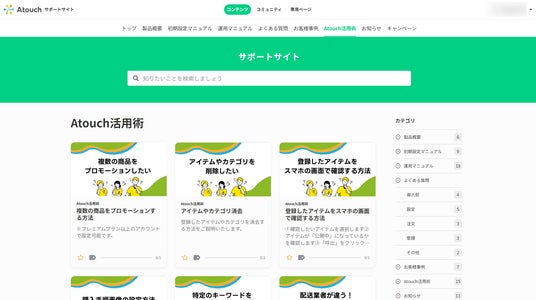 他にも、開店セミナーや運用セミナー、集客・売上の相談窓口、キャンペーン、Atouch活用術など、「Atouch」を活用したEC運用の助けになるコンテンツを設置。