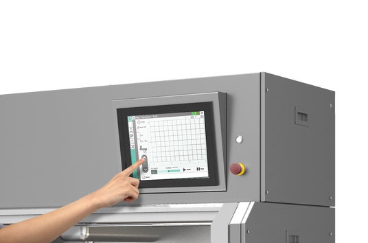 本商品は、超高圧水を発生させるポンプも本体に内蔵することでコンパクト化を図り、省スペース設置を実現しました。また、操作はシンプルかつ簡単に行えるよう、タッチパネル式の画面を採用し、直感的に使うことができます。日常的に行う洗浄作業には、簡便に短時間で行えるよう脱着式排水タンクとするなど、食品業界用に工夫してあります。