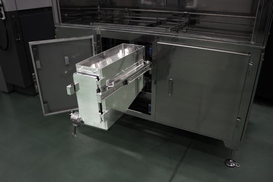 切りくずなどが溜まる部分は、小窓からの洗浄だけでなく、排水タンクを本体から容易に取り外せる構造としています。これにより、徹底的な洗浄も簡便にできます。