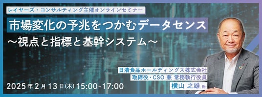 株式会社レイヤーズ・コンサルティング(東京都品川区、代表取締役CEO:杉野 尚志、以下:レイヤーズ)は、オンラインセミナー『市場変化の予兆をつかむデータセンス ~視点と指標と基幹システム~』を2025年2月13日(木)に開催することを発表いたします。