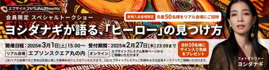 トークショーはエプソンスクエア丸の内よりオンラインで配信します。さらに、新規会員特典として、エプサイトプレミアムにお申し込みいただいた先着50名様をトークショー会場での観覧へご招待します。この機会にぜひ、エプサイトプレミアムへのお申し込みをご検討ください。
