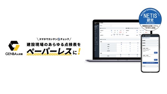 「GENBAx点検」は、建設機械の始業前点検のほか、設備や足場の点検、作業員の健康チェックなどあらゆる点検表をペーパーレス化します。点検表の回収を不要に、点検承認をスマート化し、安全点検業務を効率化するサービスです。