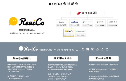 「ReviCo」は、現在280以上のECサイトに導入されているレビューマーケティングプラットフォームです。