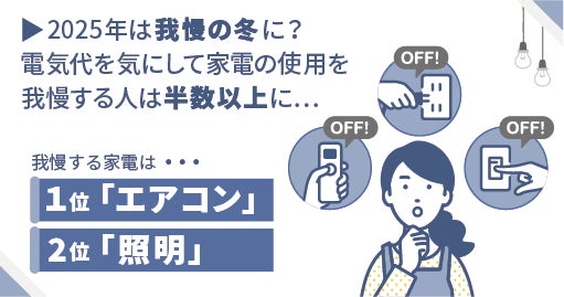 今回の調査結果から、節電を意識するあまり寒い冬場でもエアコンの使用を控え、多少部屋が暗くても照明をつけずに生活するなど、家電の使用を我慢する人が多いことが分かりました。中でもエアコン、冷蔵庫、照明器具は家庭内の消費電力の約5割を占めることから、電気代を削減するにはまずはこの3つの節電を心掛けることが必要です。