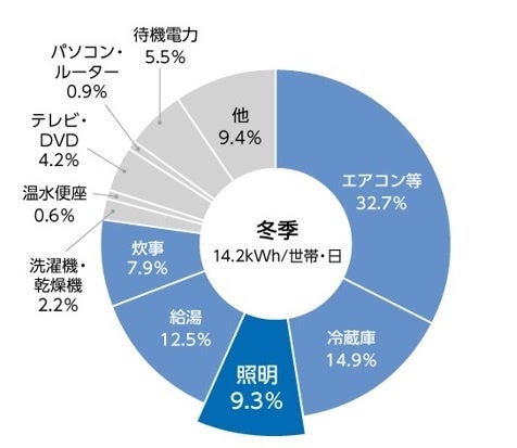 家庭における家電製品の1日での電力消費割合【冬季のデータ】
