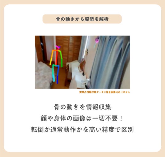 壁面設置型の骨格センサーをはじめ、複数のモーダルセンシングとAI診断を組み合わせる独自のシステムである点。装着不要かつプライバシーに配慮した見守りを実現し、高齢社会における転倒予防や在宅介護負担の軽減に貢献する革新的な取り組みです。