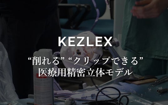 「KEZLEX」は、当社が開発・製造・販売する医療用精密立体模型であり、人骨と同様の削り心地および人体の内部構造をリアルに再現しています。30年以上にわたり、脳神経外科や耳鼻咽喉科、頭頸部外科の医師と共同で幾度もの改良を重ね、現在の完成度に至りました。医師の知見と当社の3Dプリンティング技術を中心とするモノづくりのノウハウが融合したモデルであり、国内外のハンズオンセミナーや術前シミュレーションなど、幅広い用途で利用されています。現在までに、アメリカ、ヨーロッパ、中国、東南アジアなど世界50ヵ国以上で導入されています。