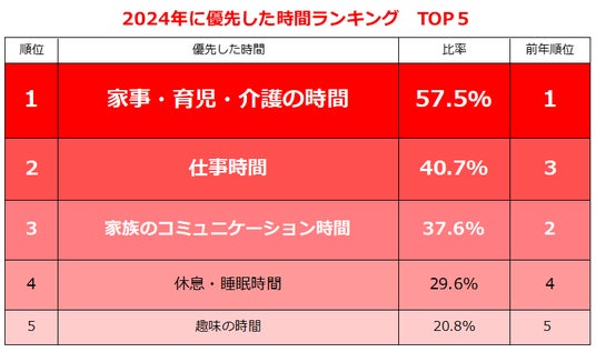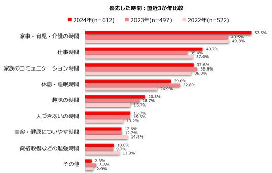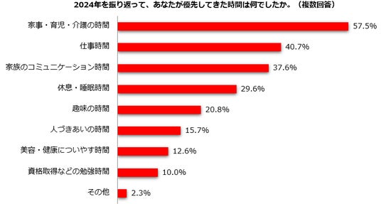 1.2024年に優先した時間 1位「家事・育児・介護の時間」57.5%