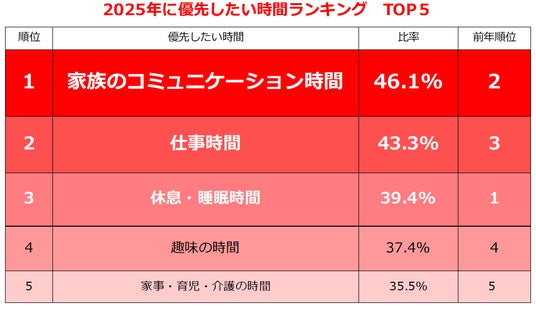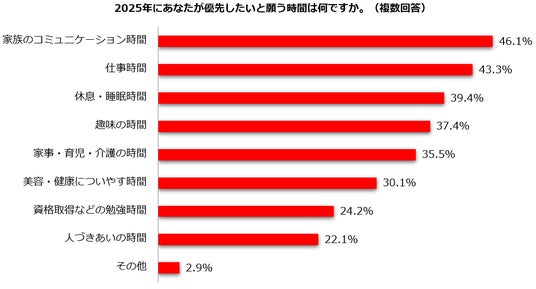3.2025年に優先したい時間 1位「家族のコミュニケーション時間」46.1%
