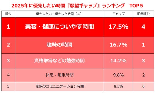 6.2025年に優先したい時間『願望ギャップ』/ランキングTOP5