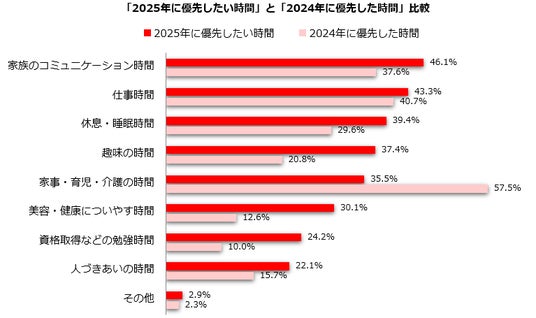 5.「2025年に優先したい時間」と「2024年に優先した時間」比較