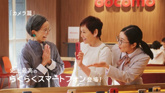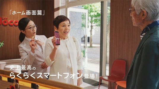 今回のCMは、シニアのスマホ選びで悩むポイントをおさえた大竹さんが、自信をもって史上最高※1のらくらくスマートフォンを提案し、お客さまがワクワクするストーリーが見どころとなっております。