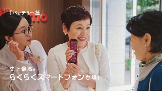 FCNT合同会社(本社:神奈川県大和市、代表取締役社長 田中典尚、以下FCNT)は、俳優の大竹しのぶさんを起用し、「らくらくスマートフォン F-53E」の新テレビCM『バッテリー』篇、『カメラ』篇、『ホーム画面』篇に加え、それら3つの特徴をまとめた『らくらくスマートフォン F-53E』篇の4つのCMを2025年1月30日より放映開始します。また、同時にFCNT公式YouTube及び各媒体でも配信を開始します。