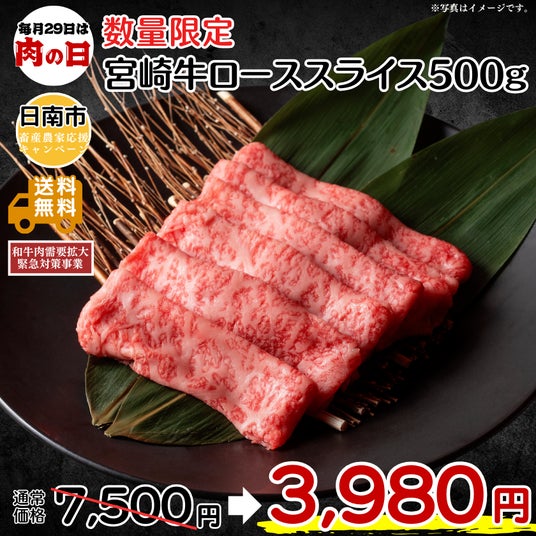 【今だけ送料無料】〈日南市産〉宮崎牛ローススライス500gネット価格7,500円
