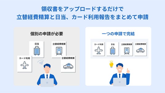 この機能のリリースにより、申請者・承認者双方の業務負担が大幅に軽減されるとともに、AI-OCRによる立替経費明細の自動作成とカード利用明細の自動突合を実現。出張精算などの業務がよりスムーズなものになります。