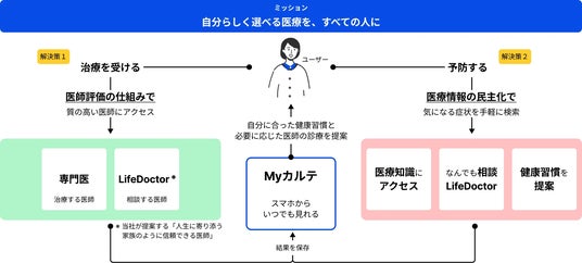 さらに、2025年5月には、信頼できる回答がすぐに来るセカンドピニオンサービス「LifeDoctor」をリリースし、これまでの医師評価の仕組みを強みとしつつ、自分らしく選べる医療をすべての人に提供するための「医療の民主化」に向けた最初の事業を展開予定です。