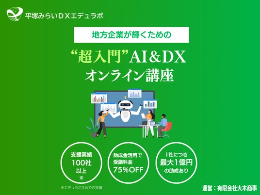 有限会社大木商事(神奈川県平塚市)は、地域みらい総研株式会社(東京都港区)と連携し、DX(デジタルトランスフォーメーション)およびAI研修サービス「平塚みらいDXエデュラボ」を開始いたします。まずは自社グループ企業向けに研修を提供し、その成果を基に、より広く地域企業や全国企業に向けてサービスを拡大していく予定です。