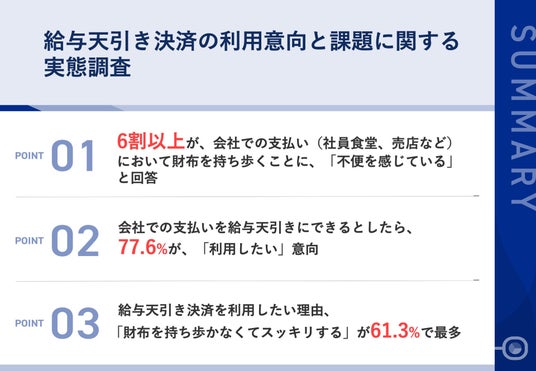 - 03|給与天引き決済を利用したい理由、「財布を持ち歩かなくてスッキリする」が61.3%で最多