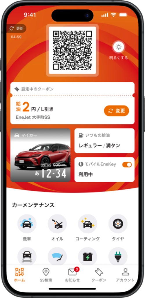 ENEOS公式アプリは、サービスステーションでの給油にとどまらず、多彩でお得なサービスを提供しており、カーメンテナンスの予約もこの一つのアプリで利用可能です。当社は今後も、お客様の利便性を最大限に高めるため、全国約12,000か所のSSネットワークを活用し、付加価値の高いサービスを提供してまいります。