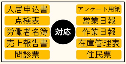『申込書DX』は、あらゆる形式の書類を文字認識し、データ化することが可能なWebサービスです。書類を使用する全ての業界でご利用いただけます。