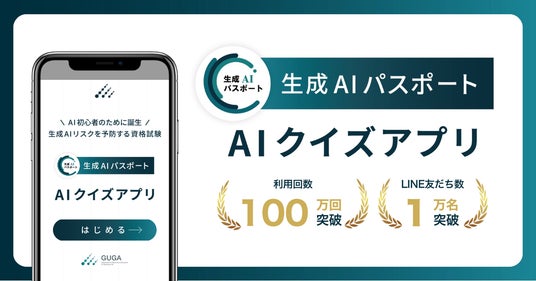 生成AIを社会に実装し、産業の再構築を目指す一般社団法人生成AI活用普及協会(理事長:井畑 敏、所在地:東京都千代田区、以下:GUGA)は、生成AIリスクを予防する資格試験「生成AIパスポート」に関する○×形式のクイズをAIが生成するLINEアプリ「生成AIパスポート AIクイズアプリ(以下:AIクイズアプリ)」の利用回数が100万回、LINEの友だち数が1万名を突破したことをお知らせいたします。