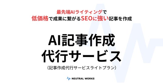 成果を出すためのブランド戦略からサイト構築、SEO、集客支援までワンストップで手掛けるデジタルマーケティングカンパニーの株式会社ニュートラルワークス(神奈川県藤沢市、代表取締役:三木五月/以下、ニュートラルワークス)が、低コスト&短納期で対応可能な「AI記事作成(AIライティング)代行サービス」を提供開始いたします。