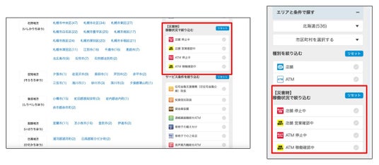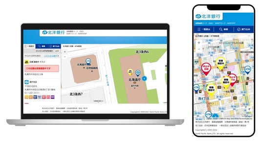 今回提供されるシステムは、災害発生時などお客様の生活に大きな影響を及ぼす事象が発生した際、北洋銀行ホームページ(PCおよびスマートフォン版)の店舗・ATM検索にて確認いただけます。