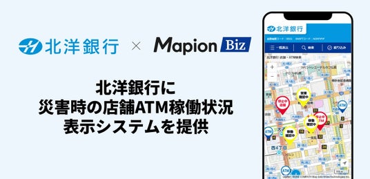 TOPPANグループの株式会社ONE COMPATH(ワン・コンパス 代表取締役社長CEO:早川 礼)が運営する法人向けの地図ソリューション「Mapion Biz(マピオン ビズ)」は、株式会社北洋銀行(取締役頭取:津山 博恒)の店舗・ATM検索ページにおいて、大地震や洪水などの災害時の店舗およびATMの稼働状況を表示するシステムを2025年1月より本格提供したことをお知らせいたします。