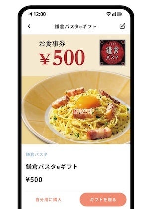 「鎌倉パスタeギフト」は、全国の「鎌倉パスタ」および「ぎをん椿庵」でのお会計時に金券としてご利用いただけるeギフトであり、200円、500円、1,000円、2,000円の4券種を販売しております。「giftee(R)︎」では、個人間で贈るギフトとして購入いただけます。また、法人は「giftee for Business」を介しアンケートの謝礼や来店促進、SNSを活用したキャンペーン等、業界を問わず様々なキャンペーンやプロモーション・マーケティング施策のインセンティブとしてご活用いただける他、自治体の各種施策のギフトとしてもご活用いただけます。
