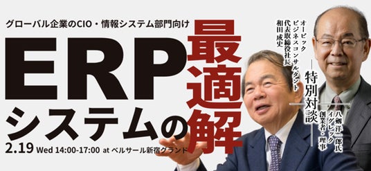 勘定奉行・奉行クラウドをはじめとする基幹業務システムを開発する株式会社オービックビジネスコンサルタント(代表取締役社長:和田 成史/本社:東京都新宿区、以下OBC)は、2025年2月19日(水)14:00から、ベルサール新宿グランドでグローバル企業のCIO・情報システム部門向けに「ERPシステムの最適解」セミナーを開催いたします。