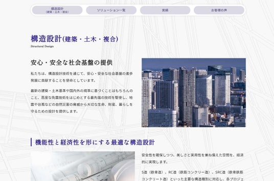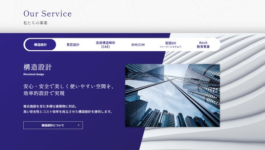 構造設計、意匠設計、高度構造解析(CAE)、BIM/CIM、配筋DXなど、事業内容や実績等を詳しく説明しています。