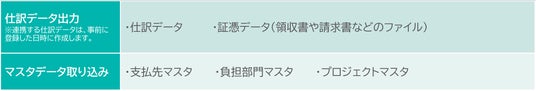 BIZUTTO経費から会計システムへの仕訳・証憑データの出力や、業務システムからの各種マスタデータの取り込みが自動連携で可能となりました。これにより、経理業務の効率化と経理担当者の作業負担の軽減を実現します。