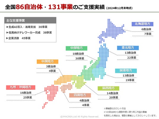 株式会社イマクリエは、住む場所やライフステージなどに縛られることなく、一人ひとりがいきいきと働ける社会を目指して、世界40か国以上に在住する登録者と共にテレワークを活用したアウトソーシングならびにコンサルティング事業を展開しています。内閣府から「地方創生テレワークアワード 地方創生担当大臣賞」を受賞した自社のノウハウや数多くの導入実績を活かし、地方自治体向けビジネスのプロモーション支援も実施しています。