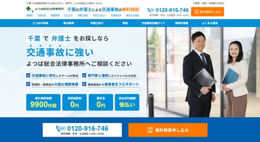 リニューアルしたよつば総合法律事務所の『千葉の弁護士による交通事故の無料相談』Webサイト