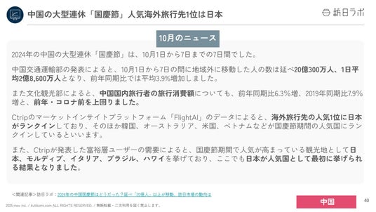 業界最大級のインバウンドビジネスメディア「訪日ラボ」及び 店舗向け集客一元化プラットフォーム「口コミコム」を運営する株式会社mov(代表取締役:渡邊 誠、本社:東京都渋谷区、以下mov)は、「国内・インバウンド関連ニュースまとめ」「インバウンド市場のトレンド」をはじめ、インバウンド対策に役立つニュースをまとめた「インバウンド情報まとめ【2024年下半期編】」を公開しました。