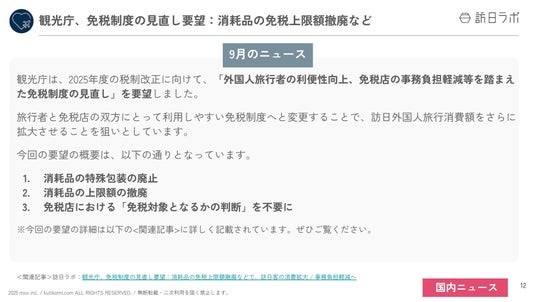 - 観光庁、免税制度の見直し要望:消耗品の免税上限額撤廃など