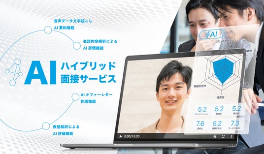 「ハイブリッドAI面接サービス」は、AI技術の活用により評価の効率化や人材発掘など、採用プロセスの様々な面における質的向上を目的とし、企業と求職者の双方に価値ある体験を提供することを目指しています。