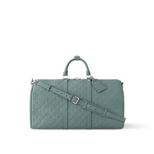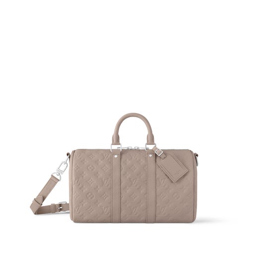 「キーポル・バンドリエール 50」は、ファレル・ウィリアムスがイタリア人画家 ジョルジョ・モランディのパレットから着想を得た柔らかな色合いを取入れ、アンティーク調のシルバーカラーの金具やコットンライニングと組み合わせました。さまざまな持ち方を楽しめる2本のロール仕上げのレザートップハンドルと取外し & 調節可能なストラップ付き。