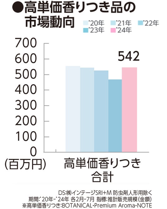 また、近年は香りに対する嗜好が多様化して、高単価香りつき品への需要が増加しています(下グラフ)。