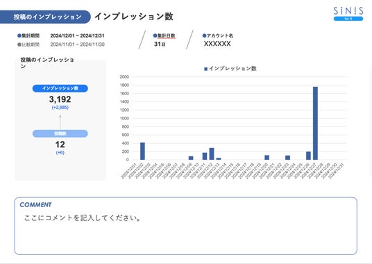 (*1):「SINIS for X」に登録直後から本機能をご利用可能ですが、登録後からデータを取得するため数値が空欄の状態でレポート作成されます。