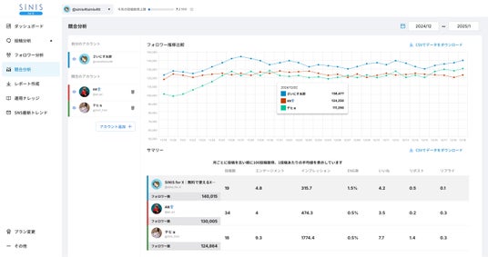 さらに、自社アカウントのフォロワー数と、他社アカウントのフォロワー数を相対的に比較することにより、自社アカウントの現状を適切に把握して目標数値を設定することができます。