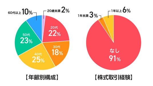 PayPay証券のNISA口座開設ユーザーは、株式取引未経験者の割合が91%、年齢別構成については20代から50代の現役世代が約9割を占めています(2024年12月末時点)。若い世代の方だけではなく、幅広い年齢層の資産運用初心者に支持されています。資産運用未経験者・初心者の方でも簡単、迷わずに直感的な操作で簡単に売買をすることができ、NISAデビューに適した厳選した銘柄ラインナップを提供しています。