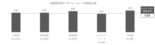 ※各雇用形態のオペレーターの幸福度を比較したグラフ